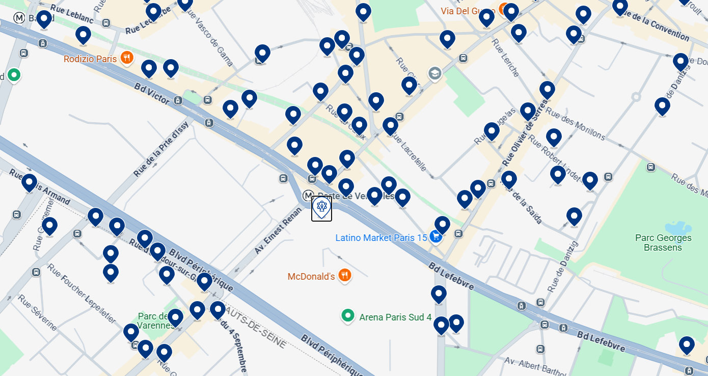 - Bus: line 80, Porte de Versailles-Parc des Expositions stop, and line 39, Desnouettes stop